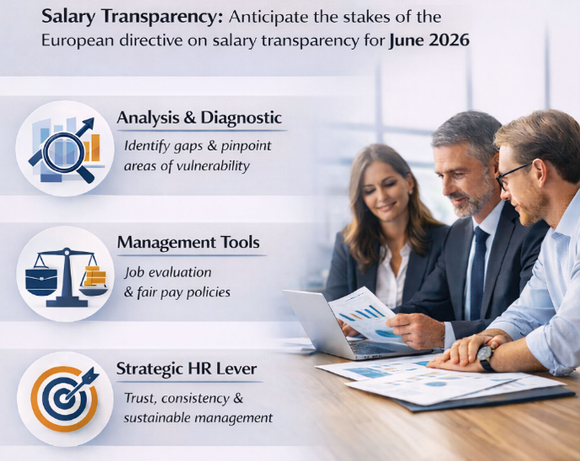 The European directive on pay transparency, whose transposition is expected by June 2026, marks a turning point. It strengthens the requirements for justification, traceability, and fairness of salary policies. Faced with this new framework, organizations have two options: